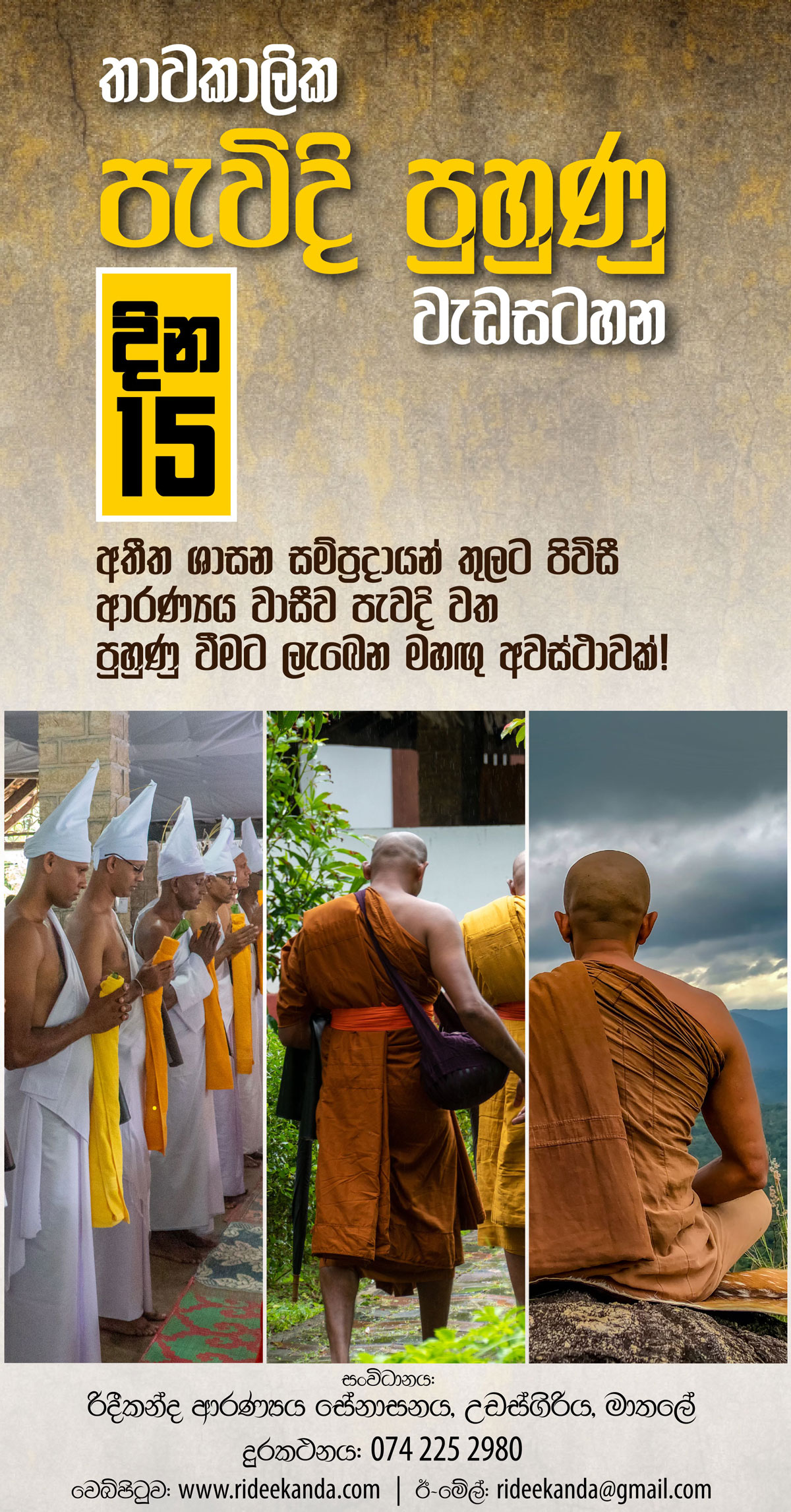 Web : https://www.rideekanda.com/temporary-ordination/